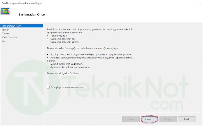 - açılan ekranda Sonraki > butonuna tıklayarak devam edin.